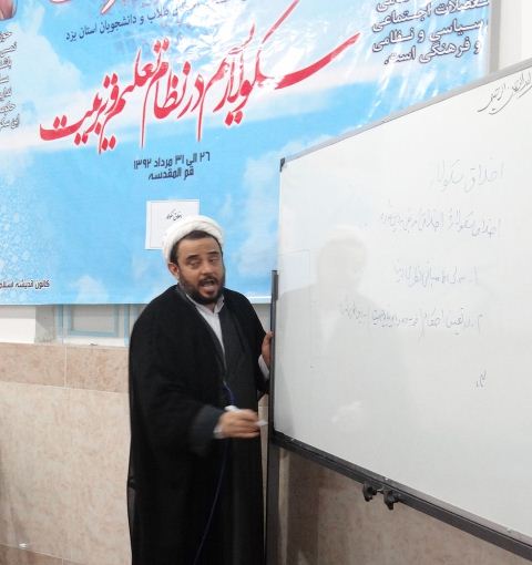 ایشان با نگاهی تاریخی و ذکر جدایی ذلت بار بخش هایی زیادی از سرزمین اسلامی در دوره حاکمیت طواغیت پرداختند. پس از آن با بیان خاطرات تلخ و شیرینی از بسیجیان سلحشور انقلاب اسلامی در 8 سال دفاع مقدس و دوران اسارت ، یاد و خاطره آن مردان مرد را با رهبری الهی امام خمینی ره به دانش پژوهان شرکت کننده در اردو با نمایش اسوه های زندگی در دوران غرب زدگی متذکر شدند.